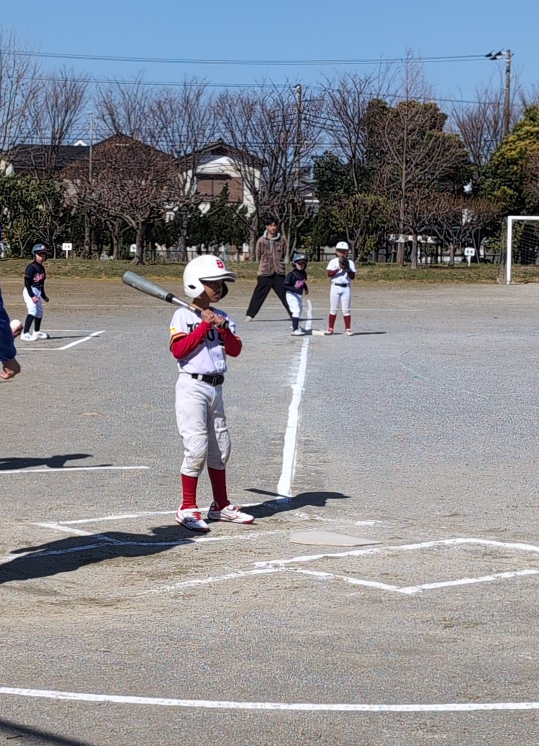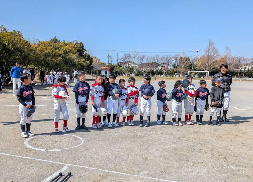 2026年2月21日 フリーリーグC(ベイドリ・袖ボ連合 vs 向山ファイターズ) 試合結果 2026年2月24日2026年2月24日 習志野ベイドリームスのみなさんと袖ボはCチームで連合を組み、この26年度を戦っていきます。 今日は向山ファイターズさんとフリーリーグで対戦しました。 低学年らしいプレーが随所に飛び出し、親御さんとしては健康に良くない試合だったと思いますが、選手たちは一所懸命戦いました。 2年生のリクト君がキャッチャーデビューです。